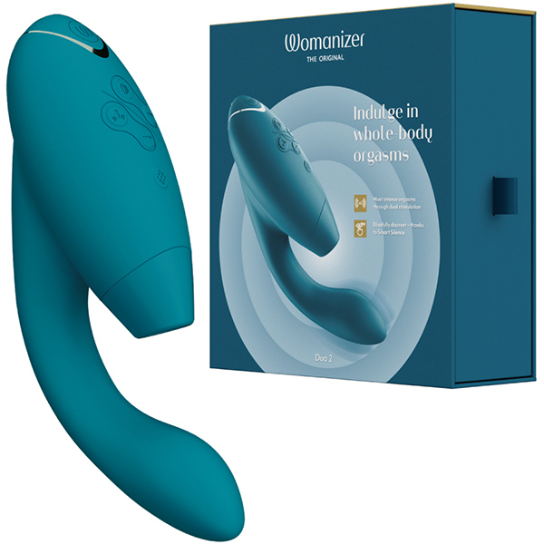 <吸引・震動/USB充電式>挿入と吸引が同時にできる大人気のウーマナイザーDUOがDUO2に進化!吸引振動の強弱段階は12段階から14段階へパワーアップ。さらにクラシック2の限定機能だった「アフターグロー機能」を搭載。オーガズムの際、電源ボタンを短く押すことで吸引も挿入部の振動も最弱の振動となり、余韻を楽しむことができます。●カラー:ペトロール※こちらの商品は受注発注商品の為、ご注文から発送までに3、4営業日掛かる場合が御座います。