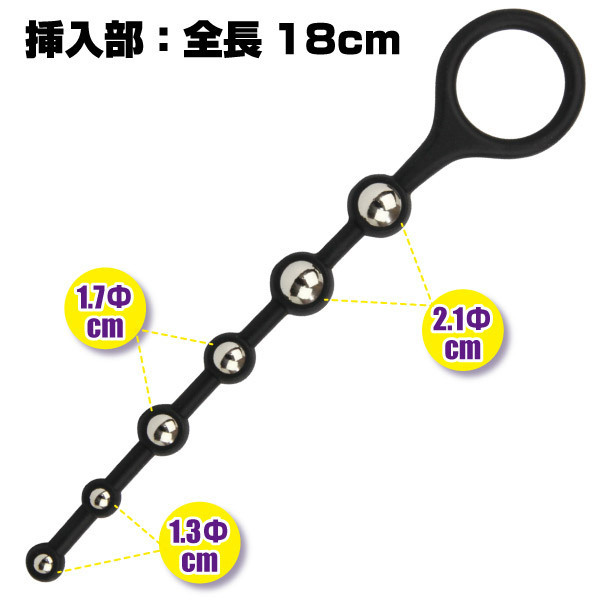 メタル特有のヒンヤリ感を堪能出来るアナルグッズ「カラフルピット メタルボール ロング」。大・中・小が2つずつ連なったメタルボールを、ソフトなシリコン素材で包んだ、異素材同士のコラボによる斬新な快感!もち手リング付きで使いやすく、長めのボディで奥までラクラク!アナル上級者も大満足の使い心地が得られるアナルグッズです。