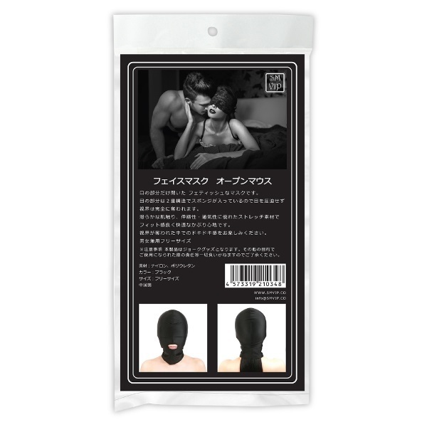 視界を遮り興奮度を高める「<SM VIP>フェイスマスク オープンマウス」の登場です!口の部分だけがオープンになった全頭タイプのフェイスマスクは、伸縮性や通気性に優れたストレッチ素材。顔にしっかりフィットするうえ、フリーサイズだから男女問わずにお使いいただけます♪目の部分はスポンジが2重構造で入っていて、パートナーの視界を優しく遮ってくれるから、被った時のストレスも少なくSMプレイを楽しめるのではないでしょうか?フェイスマスクだけでなく別で手枷や足枷を併用すれば、もっとプレイに深みをもたせることができそうですね。