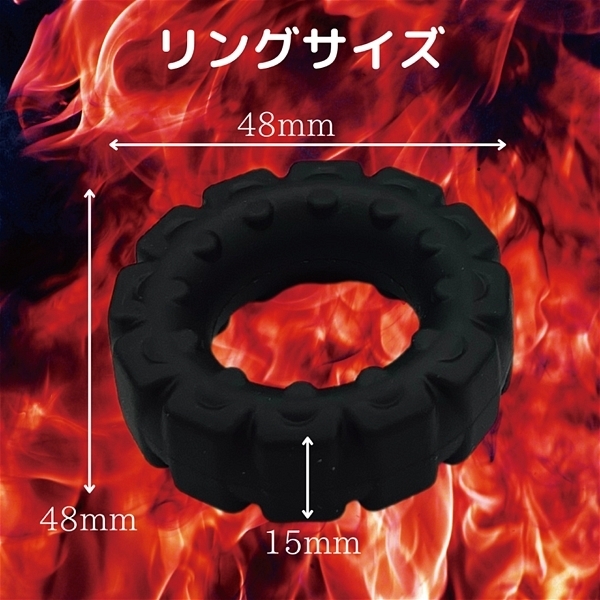 竿にも袋にも良く、柔らかくて締りも抜群の安心安全な新感覚リングが登場!高級素材のウオーターシリコンを使用しているので痛くなく、しっかり締まって最適な収縮性を実現しました♪もっちりした触感にすべすべのなめらかさ!触ってムギムギしてくなるような癒し効果も期待できそうなハイグレードなシリコンリングです♪らしさを際立たせるタイヤの様なデザインに回りに配置されたイボイボがポイント!コックの根本や袋の根本への装着がおすすめです。