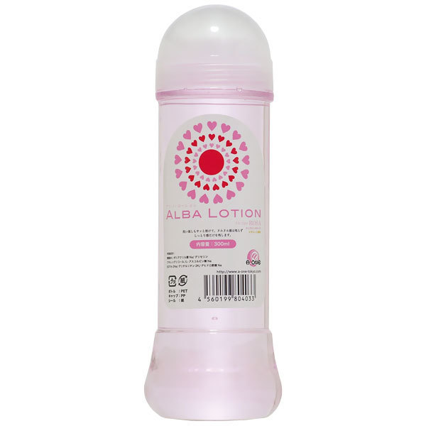 化粧品メーカーALBA社製の、ビタミンC配合高品質ローション「ALBALOTION(アルバ・ローション) 300ml」。衛生的・安心・持続性・水溶けの良さの4点に絞り「自然感覚」を追求!無香料でヌルヌル感を残さず使い易い使用感。水溶けが良く、しっとり感だけが心地よく残ります。オナホール用やマッサージにも大活躍!