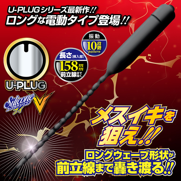 挿入刺激&拡張で上級者も納得!!ロングウェーブ形状で前立腺まで轟き渡る!!尿道アイテム『U−プラグ』シリーズにロングな電動タイプ登場!!悶絶圧迫振動でメスイキを狙え!!強力振動が尿道内部を直撃!!なめらかシリコン製で柔軟性バツグン!ポコポコした形状を奥まで押し込めばスティックが前立腺まで到達!!感じたことのない刺激を手に入れろ!!・シリコン素材・10段階振動・生活防水【ご注意】無理のない範囲でご使用ください。商品特性をご理解のうえ、自己責任でお楽しみください。