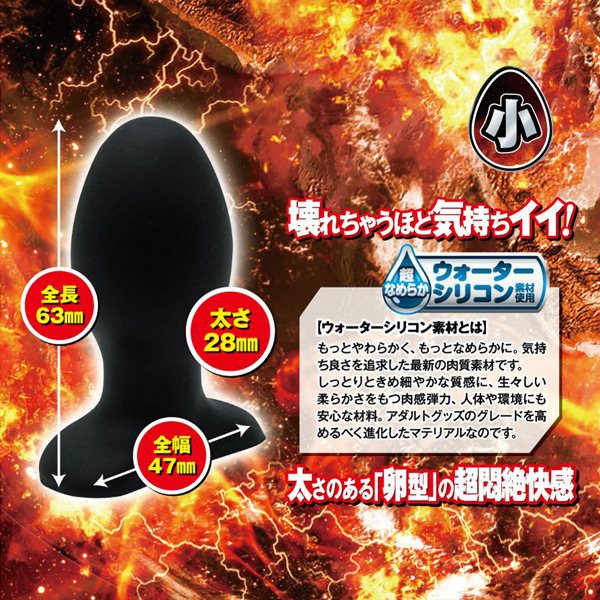壊れちゃうほど気持ちイイ!太さのある卵型のアナルストッパー「アナル破壊」!サイズは小さめなのに、気持ち良さは破壊的!その秘密は、太さのある卵型の形状!圧迫感を強めるフォルムで、ストッパーの魅力である「詰まっている感」を最大限に刺激します。卵型が生み出す、超破壊的な尻穴悶絶快感をお楽しみください!さらに、使用素材にもこだわりました!破壊的な気持ち良さを加速させる、最新素材「ウォーターシリコン」を使用!もっとやさしく、もっとなめらかに。高級アダルトグッズに使われるシリコン素材をさらに進化させた、アダルトグッズをアップグレードする最新の肉感素材です。きめ細やかな質感、生々しい弾力、環境に優しい材料など、一歩進んだこの素材をぜひご堪能ください!「小」は、全長63ミリ×直径28ミリの小さなマイクロプラグ!他では味わえない破壊的な快感が楽しめます!