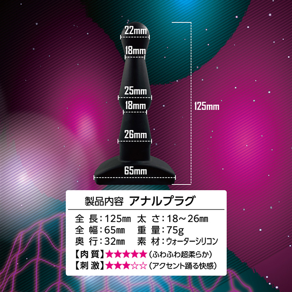 エイナスストッパーならではの挿入時の異物感や引き抜くときの快感!それらを軽快に楽しめるように最新素材になって新登場しました♪「エイナスストッパー WSウォーターシリコン (05)」。ウォーターシリコン素材を使っているのでマイルドな挿れ心地と快感が目新しい!丸いボール状の先端から徐々に太くなるくびれと3つの異型ゾーン。全体的なサイズは細めながらも、ノーマルシリコンとはまた違った挿れ心地、むにゅっとした感触がユニークで気持ちいい♪超しっとりで凄なめらか、快感度を追求したマテリアルな進化素材による生々しい生体的な肉感弾力!底面部分は平らになっているので挿入時の行動を制限することなく、拡張や圧迫などのアブノーマルなプレイをさらに楽しませてくれます。太さは1.8〜2.6センチとなっておりますので、指のような細さながらも変化のある二段絞り仕様とともに、アクセントが踊る快感もお楽しみ頂けます♪